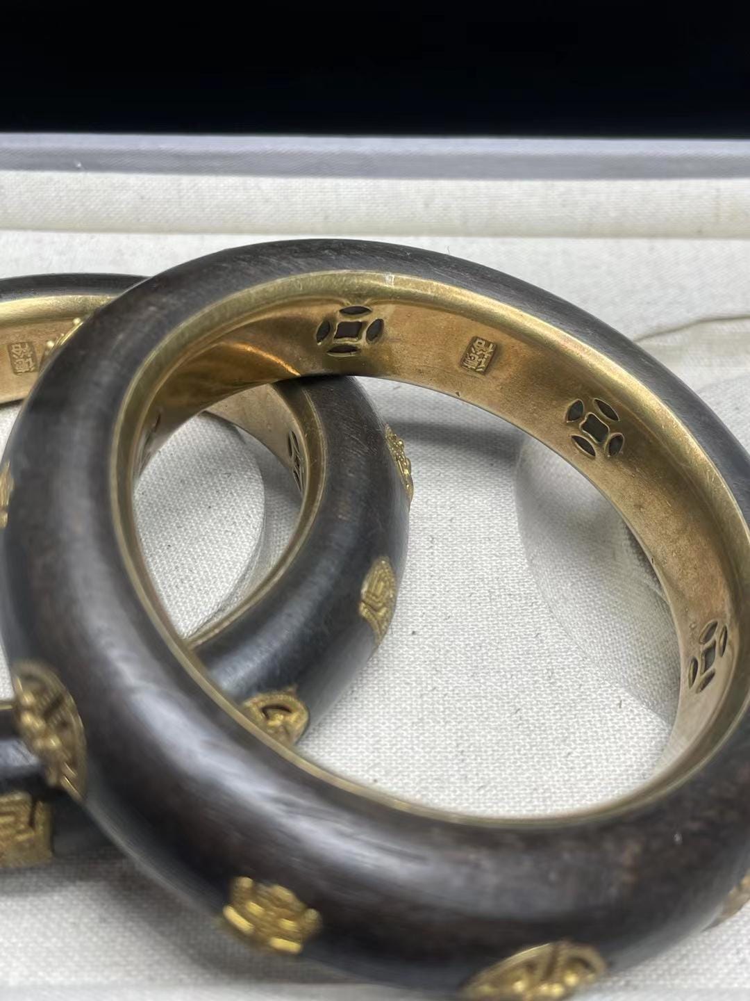 Chinese Antique Inlay Silver Gilt Agarwood Beads Bracelet
