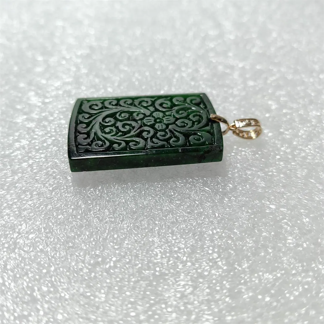 Chinese Natural Green Jadeite Pendant with 18K Gold Buckle