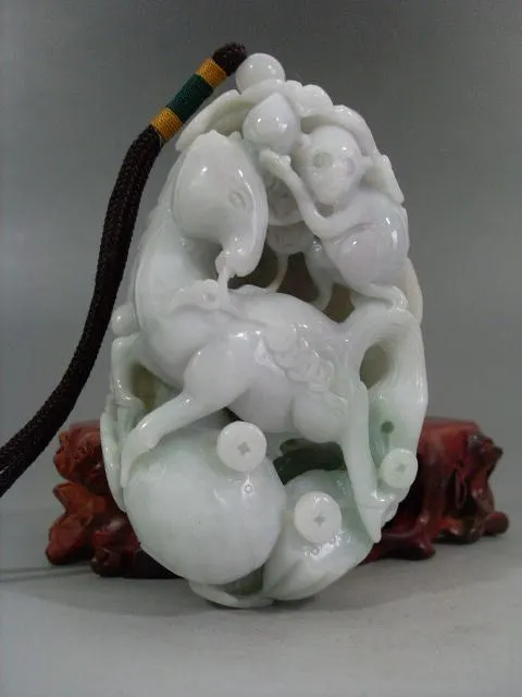 Chinese Jadeite Jade Carving of Horse and Monkey